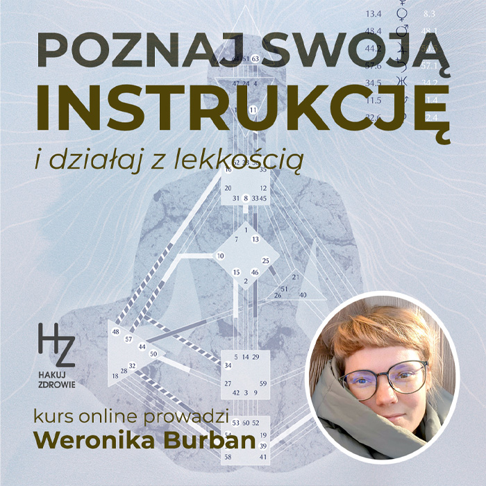 Dziękuję za ten kurs, gdyż Human Design jest narzędziem którego poszukiwałam do głębszego zrozumienia siebie. Kurs jest stworzony w przejrzysty i łatwy do zrozumienia sposób. Zainspirował mnie do pogłębienia tej wiedzy – jako Generator Manifestujący chcący wiedzieć więcej zakupiłam również trzy książki Human Design i zaczęłam opisywać grafy mojej rodzinie i przyjaciołom. Polecam ten kurs wszystkim, którzy pragną poznać siebie lepiej i zrozumieć jak działać w zgodzie ze sobą co skutkuje spokojniejszym życiem. – Renata Jabłońska